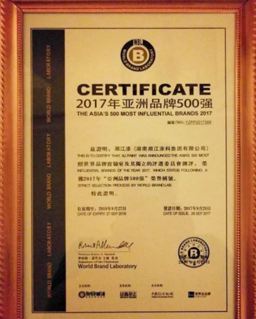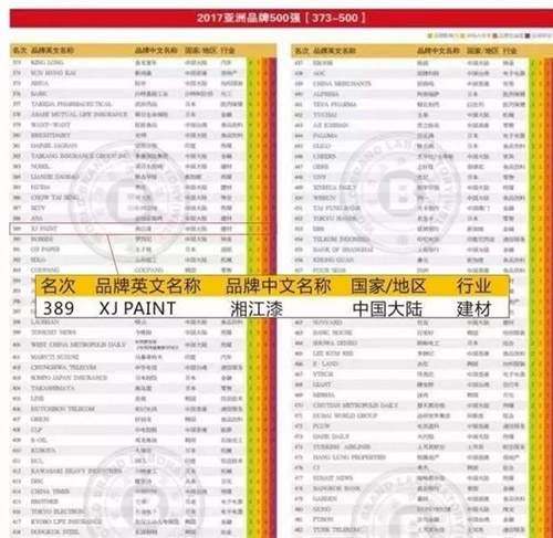 湘江涂料——中國一家進入亞洲品牌500強的涂料企業(yè)